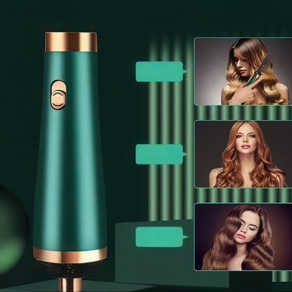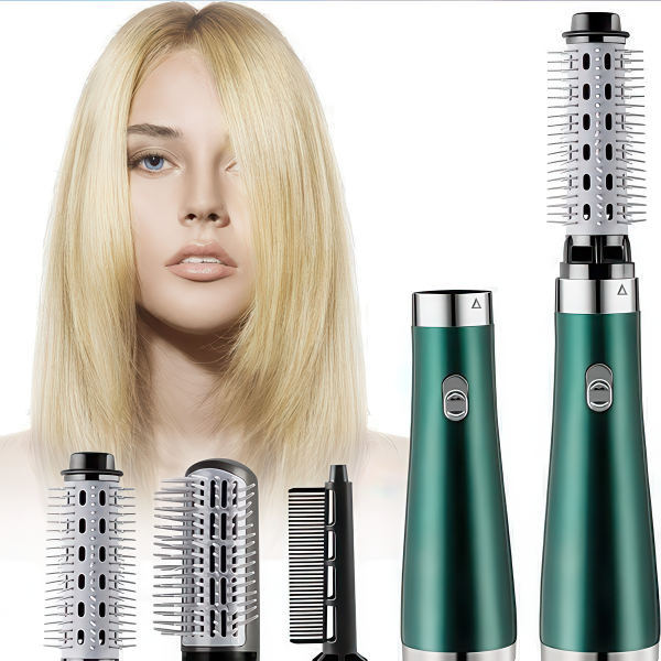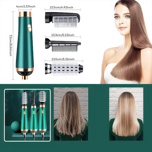 ✅ Три заменливи глави – Прилагоди го твојот стил со три различни четки за различни ефекти: волумен, права коса или гламурозни кадрици.