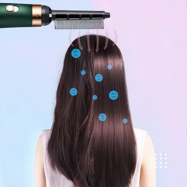 ✅ Сè во една алатка - Комбинира фен, четка, пегла и стајлер, заштедувајќи време и простор во твојата рутина за нега на коса.