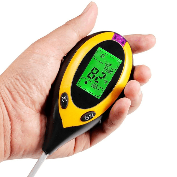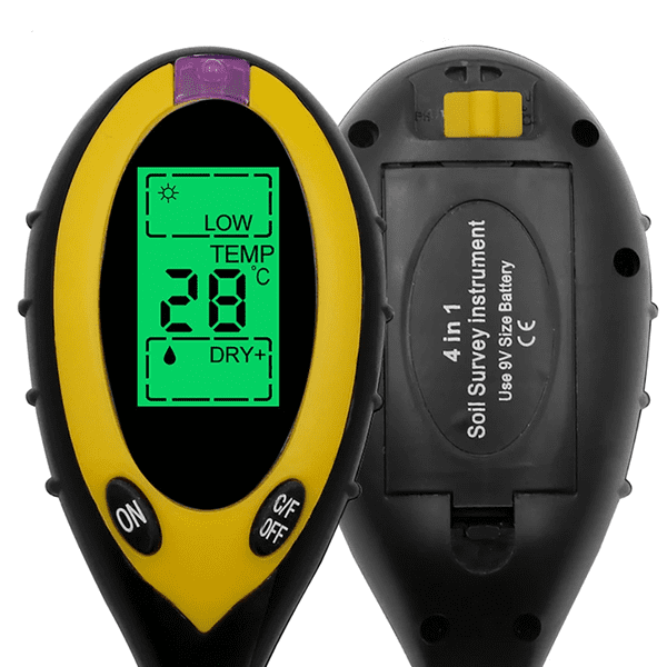 4 Во 1 тестерот за почва обезбедува сеопфатно решение за грижата за твоите растенија. Овој иновативен уред овозможува прецизно мерење на 4 клучни фактори за успешен развој на растенијата: светлина, влажност, температура и pH на почвата.