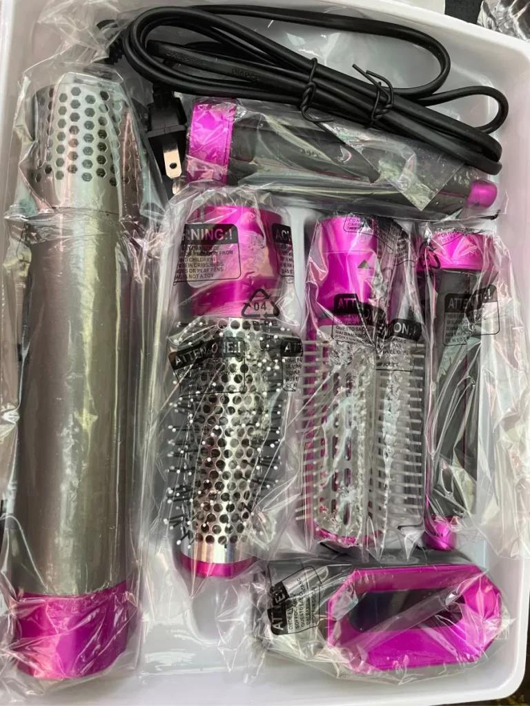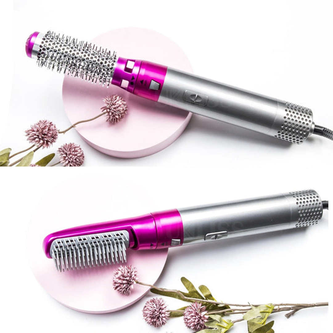 Дали бараш уред кој може да прави совршени идентични кадрици и тоа брзо и лесно, или пак четка за фенирање? Сега веќе не ти се потребни пет различни апарати за да ја истакнуваш твојата фризура секој ден. Нашата професионална четка со дури пет додатоци ќе ти помогне брзо и лесно да ја чешлаш, исправиш, исушиш, виткаш и обликуваш волуменот на косата. По стилизирањето, твојата коса ќе биде мека, сјајна и свиленкаста мазна!