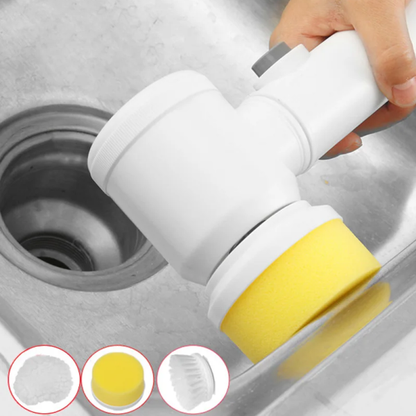 🧼 CleanGenie – 5 ВО 1 РОТИРАЧКА ЧЕТКА✨ Мултифункционална моќност: Пет глави за чистење, стругање и полирање со леснотија, напојувана со USB!