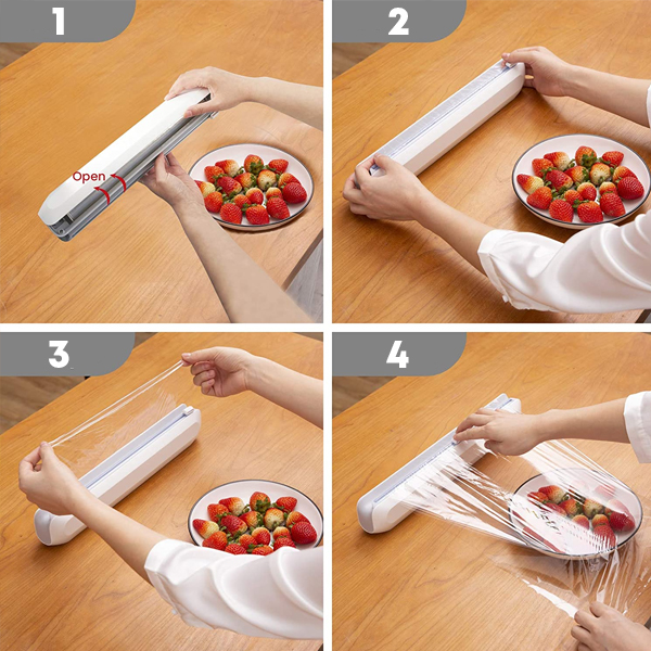 Безбедниот и сигурен филмски секач користи скриено сечило за заштита на прстите, погодно за пластична фолија, алуминиумска фолија и восочна хартија.