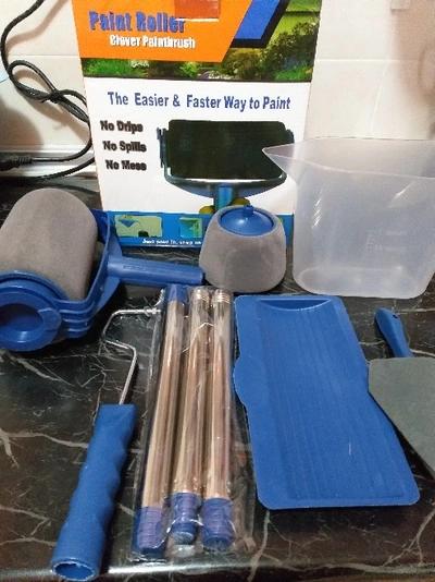 Комплетот доаѓа со сите потребни алатки. Го купив за да ги офарбам ѕидовите во мојот дом и сум многу задоволен. Сетот содржи 3 различни големини на четки кои се идеални за сите видови површини, вклучувајќи ѕидови, тавани и врати.