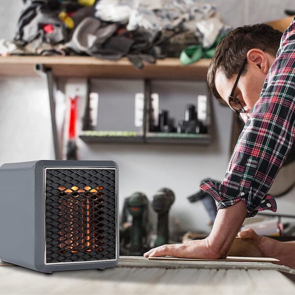 Овој мини електричен грејач работи на принципот на каролифер. Од едната страна вовлекува ладен воздух, а од друга го исфрла топол. Може да загрее просторија од 10 квадратни метри. Многу е интересно и тоа што мини грејачот има лед осветлување. Може да се користи и како светилка. Бојата на светлината ја избираш сам.