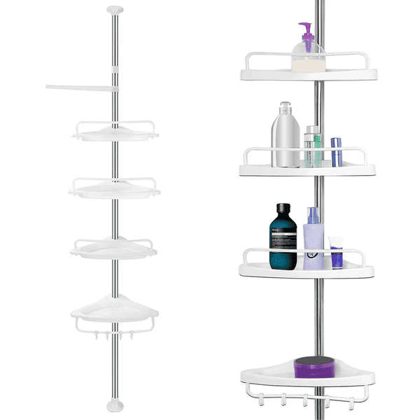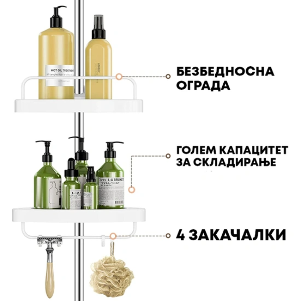 ✅ Организирај ги купките - Четири силни аголни полици ќе ги поддржат сите купки и шампони. Можеш да ги сортираш по висина, зачестеност на користење, тип на производ и слично.