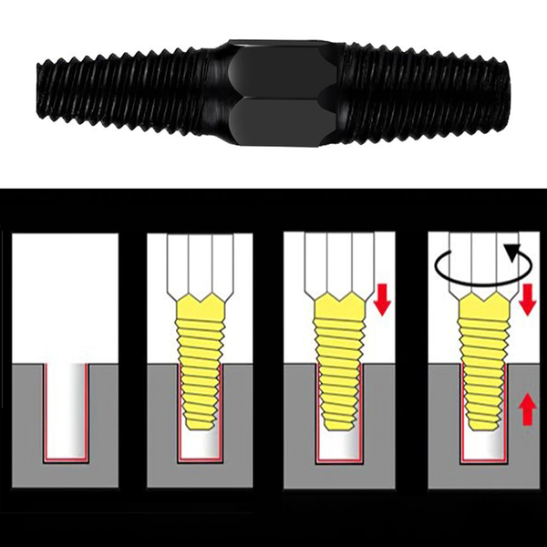 Едноставно вметни го извлекувачот на завртки во скршениот болт и ротирај со рачката за брзо отстранување!