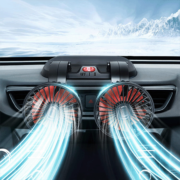 Се приклучува во 24V приклучок за запалка, има 2 брзини и ротирачка глава за насочено ладење.