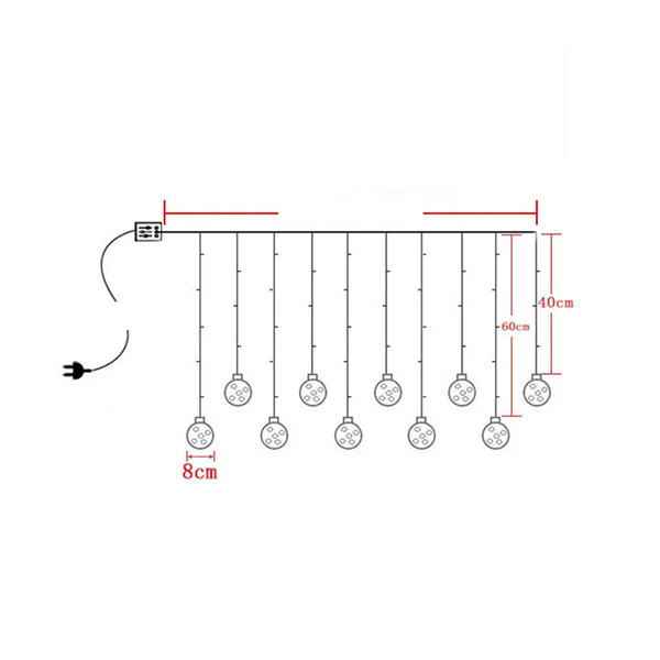 Сферичен Дизајн: Светлечките топки додаваат волумен и текстура на декорацијата, создавајќи елегантен висечки ефект.