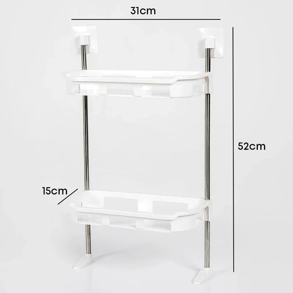 ✅ Одлична организација - Со две нивоа за складирање, оваа сталажа обезбедува одлична организација. Можете уредно да ги поставите сите потребни предмети како сапун, шампон, крпи и други тоалети, со што ќе создадеш ред и ќе го олесниш пристапот до се што ти треба.