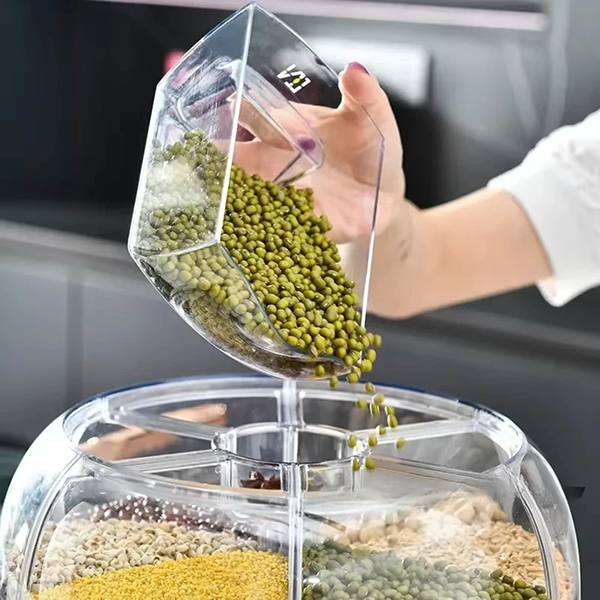 🍚 SmartGrain – ДИСПЕНЗЕР ЗА РАЗЛИЧНИ ВИДОВИ ХРАНА✨ Паметно складирање: Иновативен ротирачки систем кој ги чува вашите намирници свежи, заштитени и совршено организирани во секој момент!