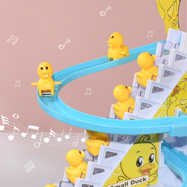 Секоја од овие мали патки има посебен механизам кој им овозможува да се качуваат и да се движат по патеката, создавајќи магична глетка која сигурно ќе ги воодушеви децата. Оваа играчка е вистинско уживање бидејќи ги поттикнува да го следат движењето на патките и да комуницираат со патеката.