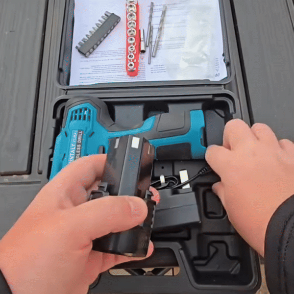 Со PowerDrill, добивате компактен алат кој е идеален за работа во тесни простори и на висина. Оваа бормашина доаѓа со моќна литиумска батерија од 12V која обезбедува доволно енергија за шрафење, одвртување и дупчење на помеки материјали како дрво, пластика или гипс картон. Фокусот е на чистата моќност на самата бормашина, без дополнителен прибор, што го прави овој сет исклучително достапен и погоден за оние кои веќе имаат свој сет битови. Ергономскиот дизајн и малата тежина овозможуваат работа без напор, а прилагодливата брзина гарантира прецизност при шрафењето.