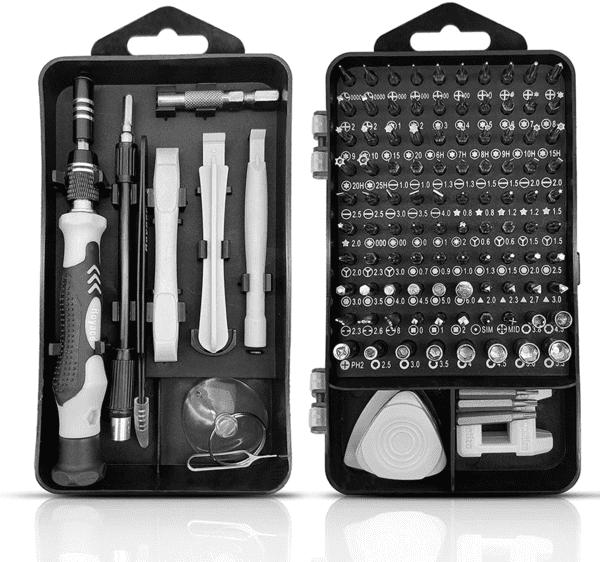 ✅ Повеќенаменска употреба - Со сет од 115 бита и прецизни алатки, можеш да извршуваш широк опсег на работи, од мали поправки на електроника до склопување мебел.