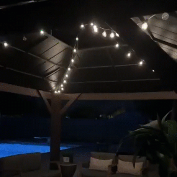Топло амбер светло: Инкандецентните светилки обезбедуваат пријатна атмосфера, идеална за вечери на терасата или во дворот.