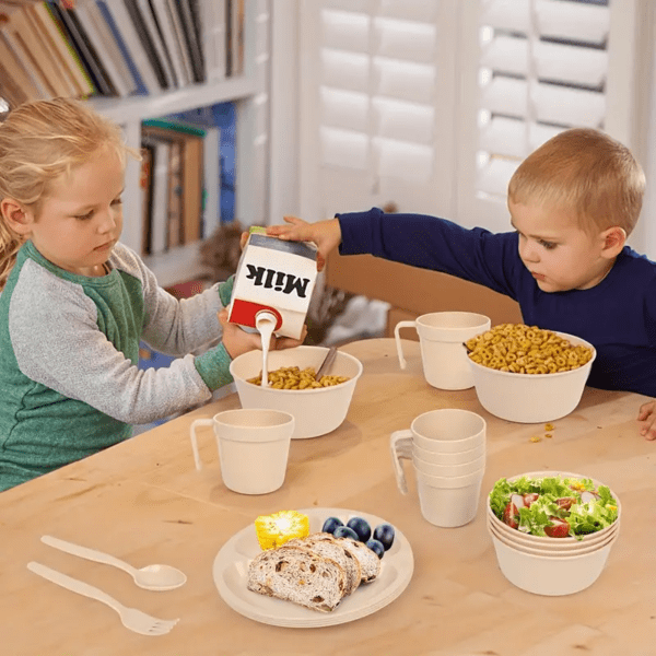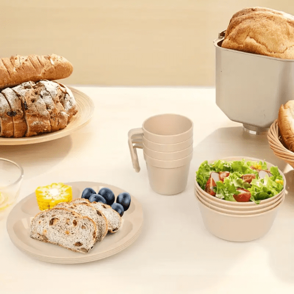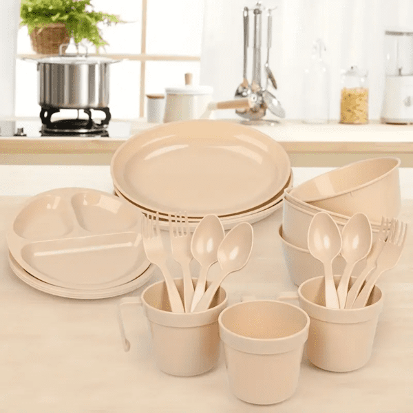 ✅ Разновидност во употреба - Со 4 плитки чинии, 4 чинии за салата, 4 длабоки чинии за супа, 4 чаши, 4 вилушки и 4 лажици, овој сет обезбедува се што ти треба за целосен оброк на отворено.