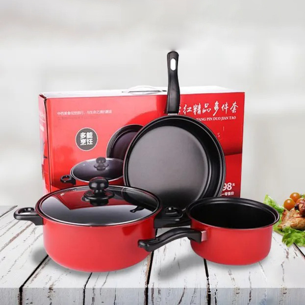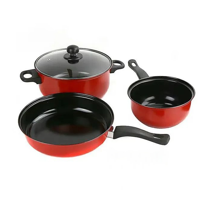Прекрасна црвена боја! Овој разновиден сет ги исполнува сите мои потреби! Големо тенџере со стаклен капак, помало тенџере и тавче со рачка - се што ми треба за совршено готвење!