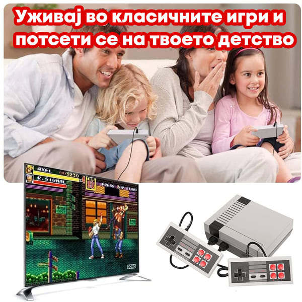 ✅ Носталгија со модерен допир - Оваа конзола ја враќа носталгијата на класичните игри, но со модерни допири кои го подобруваат корисничкото искуство. Уживај во извонреден квалитет на слика и звук додека се враќаш во златното доба на игрите.