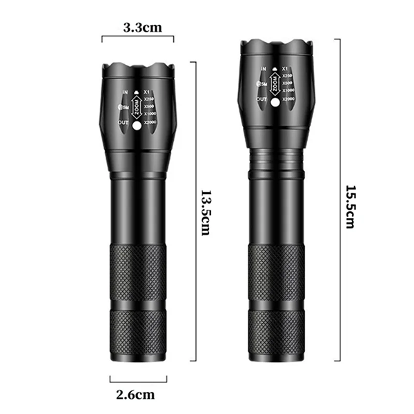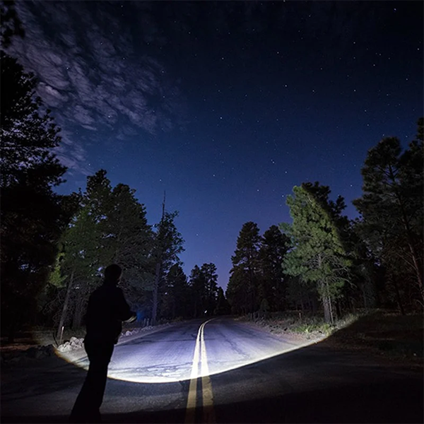 Т6 ЛЕД Технологија: Обезбедува интензивна бела светлина со голем дострел, идеална за пребарување на терен или осветлување на големи површини.