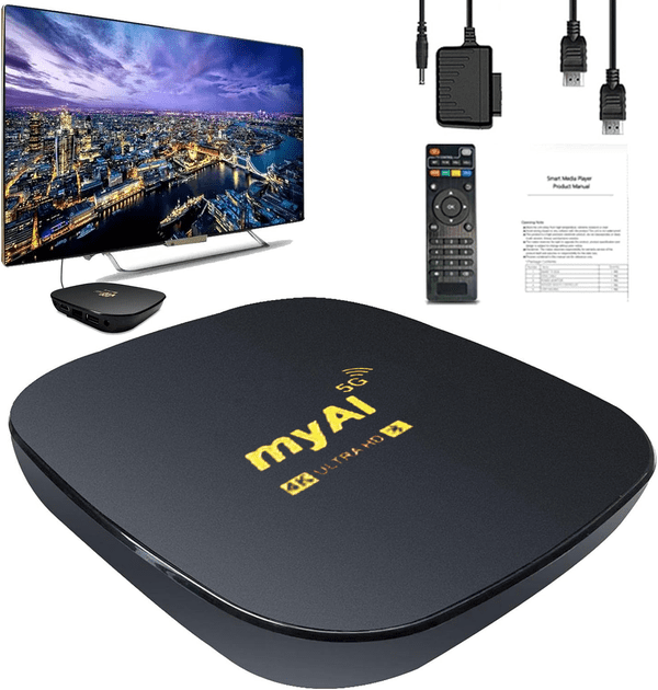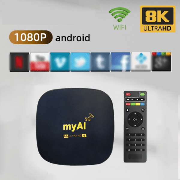 MyAI Android TV Box нуди решение за забава богато со функции што комбинира моќни перформанси, неверојатни визуелни слики и беспрекорни способности за стриминг, што го прави совршен додаток на секое поставување за домашна забава. Трансформирај го твоето ТВ искуство и отклучи свет на бескрајни можности за забава со MyAI Android TV Box.