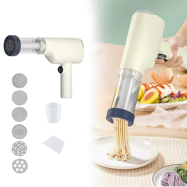 Со PastaPro, можете да станете вистински мајстор во кујната, без напор. Овој апарат со пиштол-дизајн има вградена батерија, што ви овозможува да го користите без кабли и приклучоци. Во пакетот се вклучени 6 различни глави, со кои можете да направите разни форми на паста – од класични шпагети и фетучини до подебели макарони. Едноставно ставете го тестото и притиснете. Апаратот се полни преку USB-кабел, што го прави идеален за секоја модерна кујна. Уживајте во вкусот на свежата паста, подготвена со љубов и минимален напор!