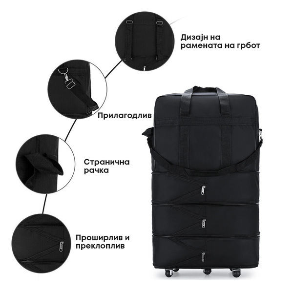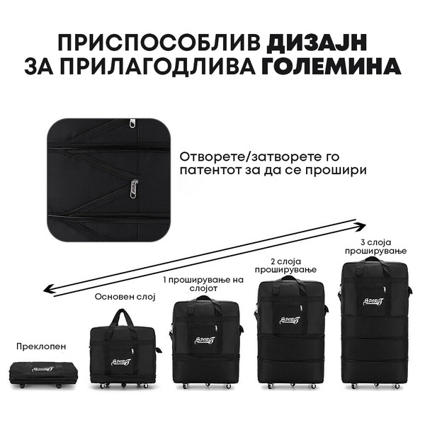 ✅ Зголеми го капацитетот колку што е потребно - Овој куфер ти овозможува да ја прилагодиш големината според твоите потреби, што го прави совршен за различни видови патувања.