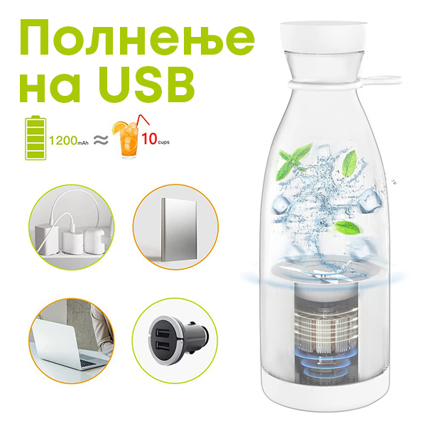 Опремен со батерија што се полни, овој блендер те ослободува од проблемите со каблите за напојување, што го прави совршен за дома, канцеларија, теретана или авантури на отворено.