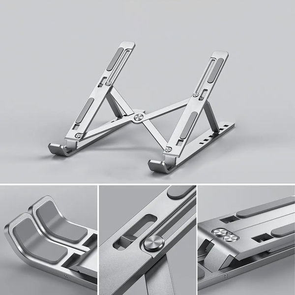 Ти здодеа да седиш со лаптоп во скут, по што чувствуваш напнатост во целото тело? На тоа му дојде крајот! Прилагодливиот алуминиумски држач за лаптоп ќе ти ја направи работата пријатна со можност за прилагодување на положбите.