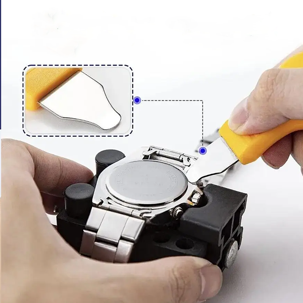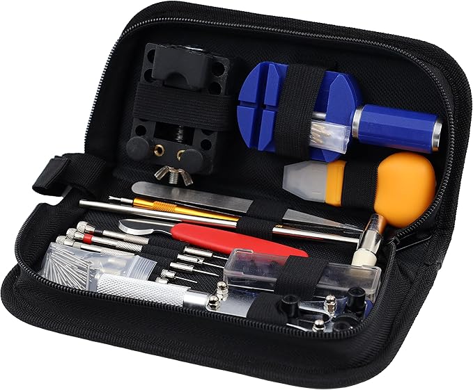 Овој професионален комплет за поправка на часовници ти овозможува лесно и ефикасно да ги решиш повеќето проблеми со твојот часовник без да одиш кај часовничар. Во сетот се вклучени алатки за отворање на задниот капак, заменување на батерии, прилагодување и скратување на ремчиња, отстранување на пружни шипки и поставување на нови заптивки.