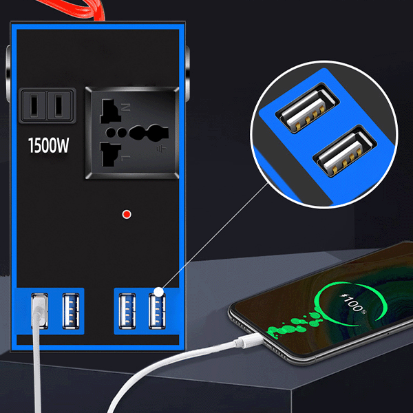 Дали ви е потребна електрична енергија во движење? Претворете го вашето возило во моќна електрична станица со 🔌 RoadPower – 1500W ИНВЕРТЕР ЗА АВТОМОБИЛИ И КАМИОНИ! Овој компактен и ефикасен уред ви овозможува да користите домашни апарати и да ги полните електронски уреди директно од акумулаторот на вашиот автомобил или камион. Идеален за патувања, кампување, работа на терен или како резервен извор на енергија.