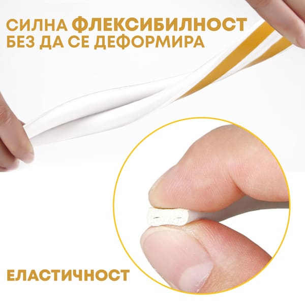 Нашата заптивна лента ја подобрува звучната изолација на твојот дом, намалувајќи ја амбиенталната бучава и обезбедувајќи ви тивок и удобен внатрешен простор. Можеш да уживаш во тишината без оглед на надворешните одвлекувања. Заптивната лента исто така помага да се спречи прав, инсекти и други несакани честички да влезат во твојот дом или канцеларија. Ова ја прави твојата околина почиста и поздрава.