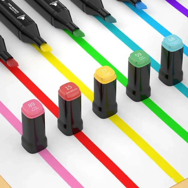 Со ColorMax, добивате импресивен сет од 80 различни нијанси, што овозможува супериорно нијансирање, сенчење и мешање на бои. Овие фломастери се најчесто двострани: едната страна има широк, закосен врв за големи површини и брзо боење, а другата страна има тенок врв за прецизни линии, детали и контури. Тие користат мастило на база на алкохол кое брзо се суши, спречува размачкување и е отпорно на вода по сушењето. Сетот доаѓа спакуван во практична торбичка или кутија за лесно организирање и носење.