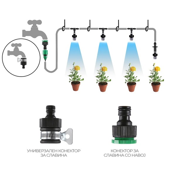 ✅ Економичен -Потрошувачка на вода околу 2 литри на час по распрскувач.
