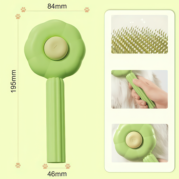 Со специјалната четка за домашни миленици, можеш лесно и ефикасно да ги отстраниш мртвите влакна, да ги исчешлаш јазлите и да го намалиш опаѓањето на косата на твоето домашно милениче. Со оваа специјална четка за домашни миленици, негата на косата станува брза и лесна!