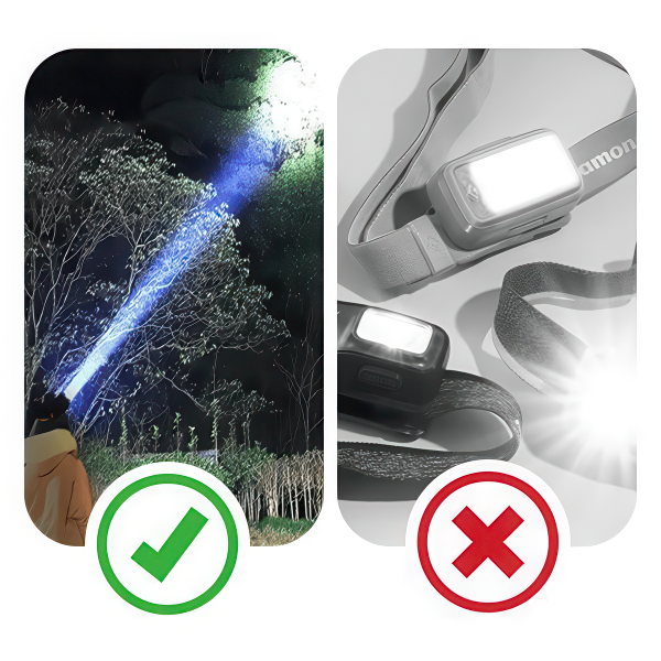 ✅ Долг дострел – Со моќни LED светла, оваа светилка обезбедува осветлување на долги растојанија, овозможувајќи ти лесно да осветлуваш големи простори или темни агли.